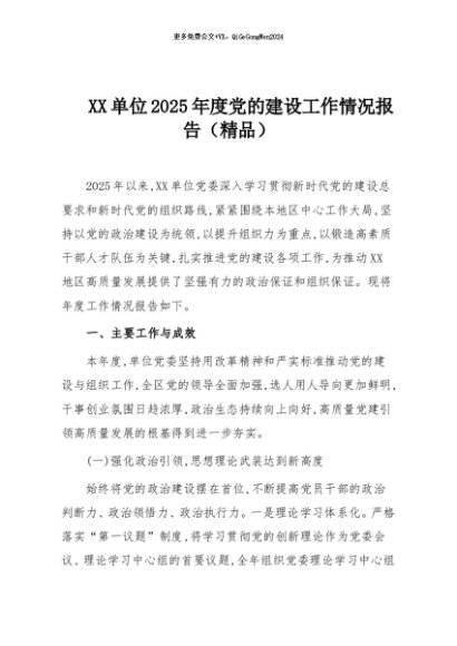/ 【七哥公文】2025年:XX单位2025年度党的建设工作情况报告(精品)+更多免费公文+VX:QiGeGongWen2024