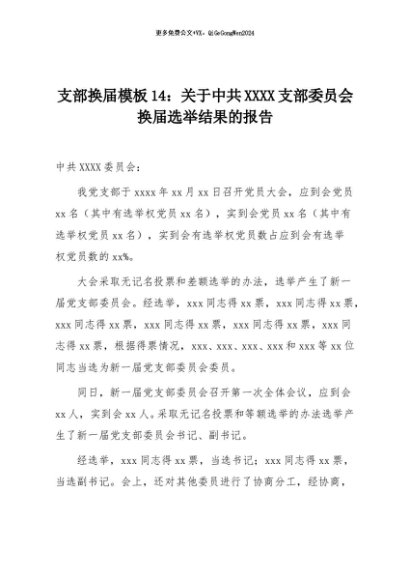 【七哥公文】2025年:支部换届模板14:关于中共XXXX支部委员会换届选举结果的报告+更多免费公文+VX:QiGeGongWen2024