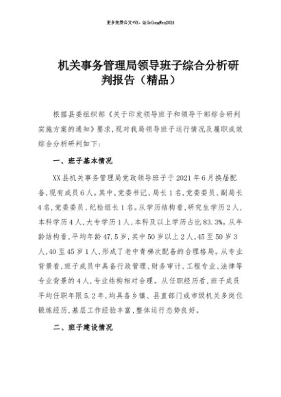 / 【七哥公文】2025年:机关事务管理局领导班子综合分析研判报告(精品)+更多免费公文+VX:QiGeGongWen2024