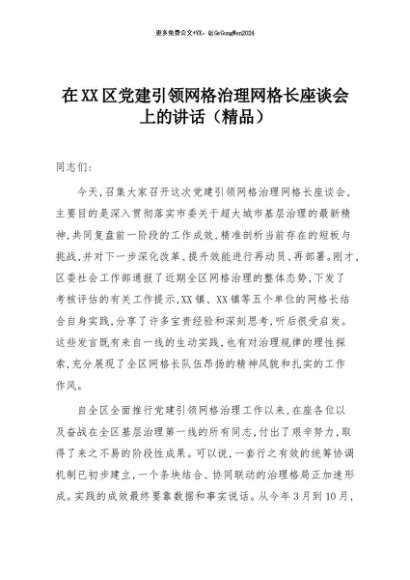 【七哥公文】2025年:在XX区党建引领网格治理网格长座谈会上的讲话(精品)+更多免费公文+VX:QiGeGongWen2024