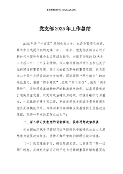 / 【七哥公文】2025年:党支部2025年工作总结+更多免费公文+VX:QiGeGongWen2024