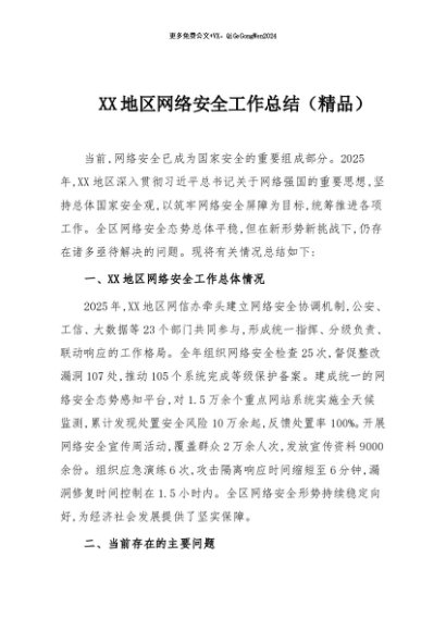 / 【七哥公文】2025年:XX地区网络安全工作总结(精品)+更多免费公文+VX:QiGeGongWen2024