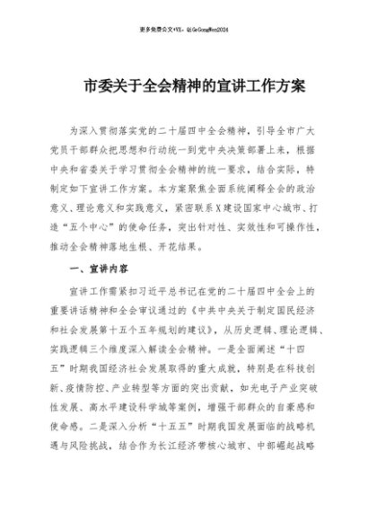 / 【七哥公文】2025年:市委关于全会精神的宣讲工作方案+更多免费公文+VX:QiGeGongWen2024