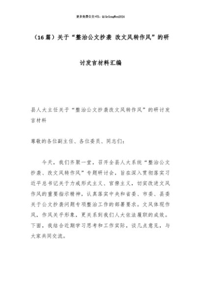 【七哥公文】2025年:(16篇)关于“整治公文抄袭 改文风转作风”的研讨发言材料汇编+更多免费公文+VX:QiGeGongWen2024
