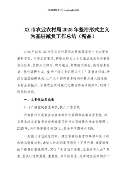 【七哥公文】2025年:XX市农业农村局2025年整治形式主义为基层减负工作总结(精品)+更多免费公文+VX:QiGeGongWen2024