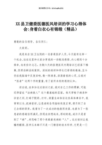 【七哥公文】2025年:XX县卫健委医德医风培训的学习心得体会:身着白衣心有锦缎(精品)+更多免费公文+VX:QiGeGongWen2024