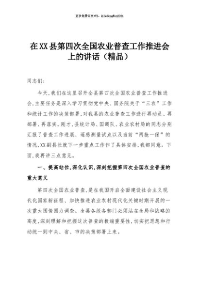 【七哥公文】2025年:在XX县第四次全国农业普查工作推进会上的讲话(精品)+更多免费公文+VX:QiGeGongWen2024