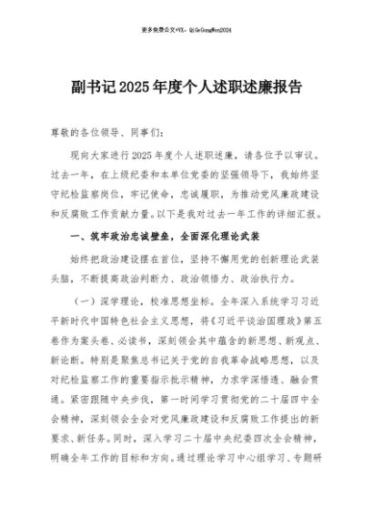 / 【七哥公文】2025年:副书记2025年度个人述职述廉报告+更多免费公文+VX:QiGeGongWen2024