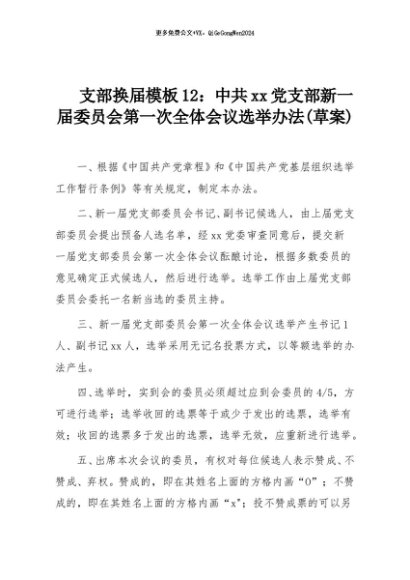 【七哥公文】2025年:支部换届模板12:中共xx党支部新一届委员会第一次全体会议选举办法(草案)+更多免费公文+VX:QiGeGongWen2024