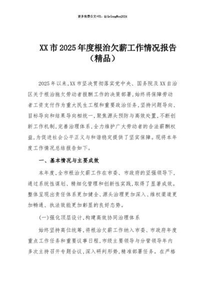 / 【七哥公文】2025年:XX市2025年度根治欠薪工作情况报告(精品)+更多免费公文+VX:QiGeGongWen2024