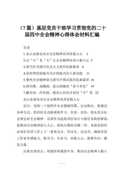 【七哥公文】2025年:(7篇)基层党员干部学习贯彻党的二十届四中全会精神心得体会材料汇编+更多免费公文+VX:QiGeGongWen2024