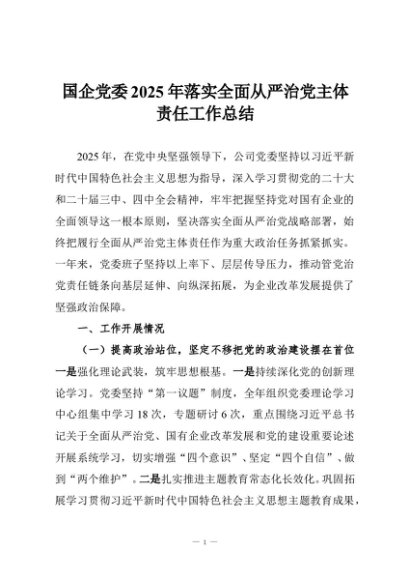 【七哥公文】2025年:国企党委2025年落实全面从严治党主体责任工作总结+更多免费公文+VX:QiGeGongWen2024