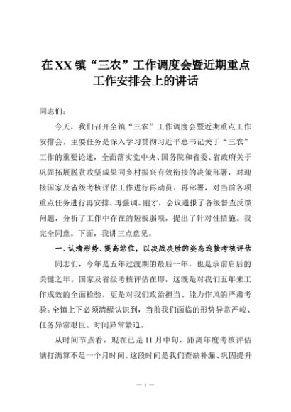 【七哥公文】2025年:在XX镇“三农”工作调度会暨近期重点工作安排会上的讲话+更多免费公文+VX:QiGeGongWen2024