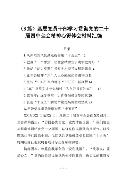 【七哥公文】2025年:(8篇)基层党员干部学习贯彻党的二十届四中全会精神心得体会材料汇编+更多免费公文+VX:QiGeGongWen2024