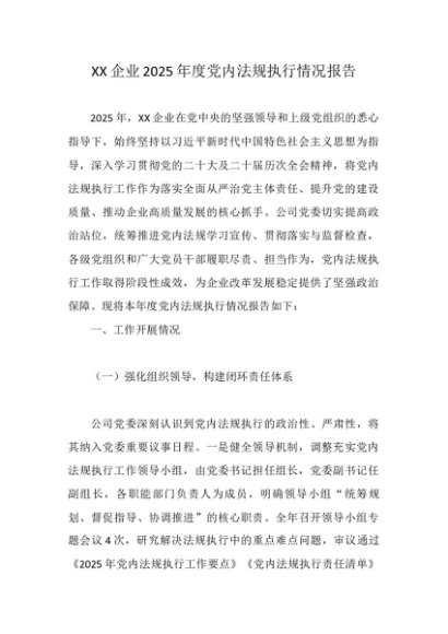 / 【七哥公文】2025年:XX企业2025年度党内法规执行情况报告+更多免费公文+VX:QiGeGongWen2024