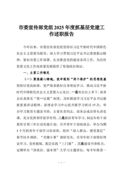 / 【七哥公文】2025年:市委宣传部党组2025年度抓基层党建工作述职报告+更多免费公文+VX:QiGeGongWen2024