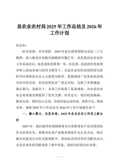 / 【七哥公文】2025年:县农业农村局2025年工作总结及2026年工作计划+更多免费公文+VX:QiGeGongWen2024