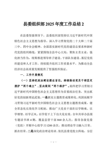 / 【七哥公文】2025年:县委组织部2025年度工作总结2+更多免费公文+VX:QiGeGongWen2024