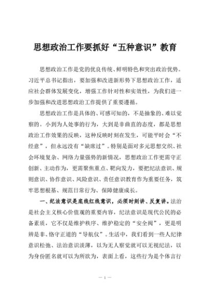 / 【七哥公文】2025年:思想政治工作要抓好“五种意识”教育+更多免费公文+VX:QiGeGongWen2024