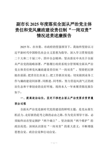 【七哥公文】2025年:副市长2025年度落实全面从严治党主体责任和党风廉政建设责任制“一岗双责”情况述责述廉报告+更多免费公文+VX:QiGeGongWen2024