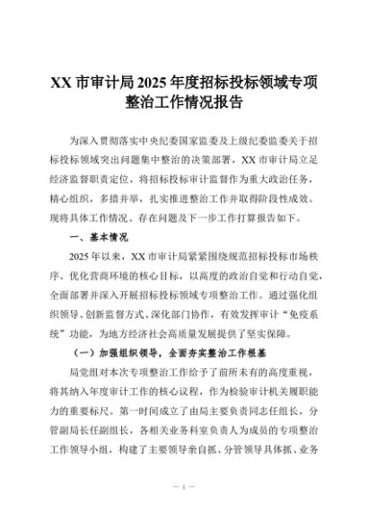 【七哥公文】2025年:XX市审计局2025年度招标投标领域专项整治工作情况报告+更多免费公文+VX:QiGeGongWen2024