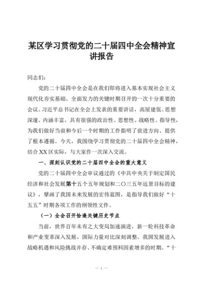 / 【七哥公文】2025年:某区学习贯彻党的二十届四中全会精神宣讲报告+更多免费公文+VX:QiGeGongWen2024