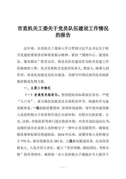 / 【七哥公文】2025年:市直机关工委关于党员队伍建设工作情况的报告+更多免费公文+VX:QiGeGongWen2024