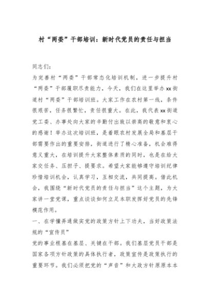/ 【七哥公文】2025年:村“两委”干部培训:新时代党员的责任与担当+更多免费公文+VX:QiGeGongWen2024
