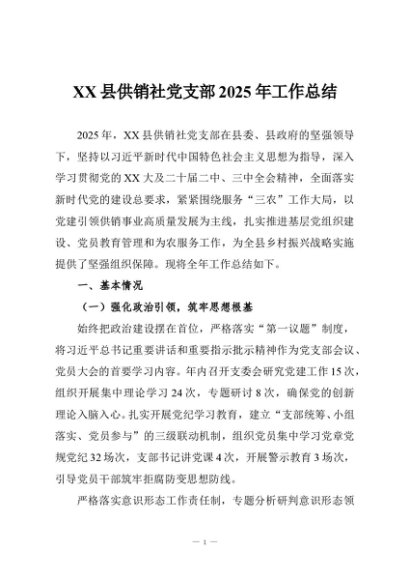 / 【七哥公文】2025年:XX县供销社党支部2025年工作总结+更多免费公文+VX:QiGeGongWen2024