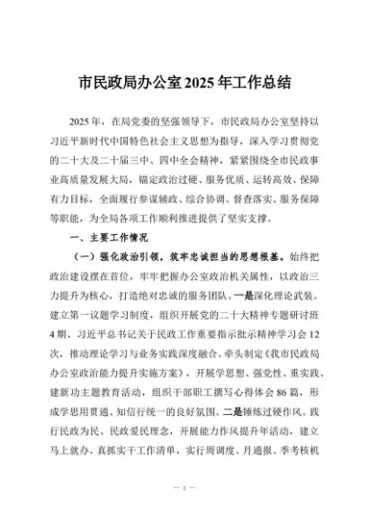 / 【七哥公文】2025年:市民政局办公室2025年工作总结+更多免费公文+VX:QiGeGongWen2024