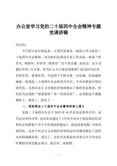 / 【七哥公文】2025年:办公室学习党的二十届四中全会精神专题党课讲稿+更多免费公文+VX:QiGeGongWen2024