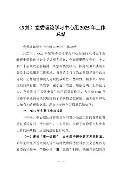 / 【七哥公文】2025年:(3篇)党委理论学习中心组2025年工作总结+更多免费公文+VX:QiGeGongWen2024