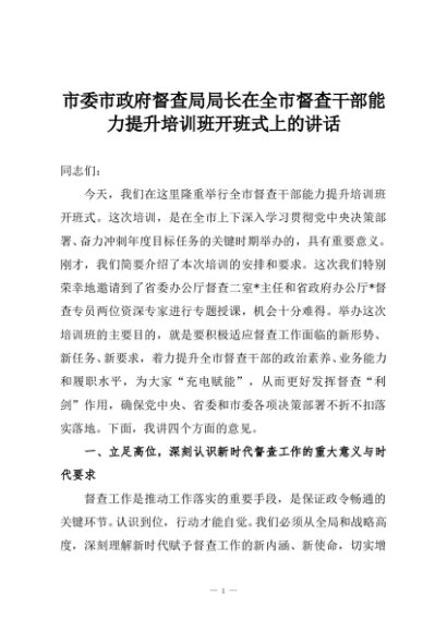 【七哥公文】2025年:市委市政府督查局局长在全市督查干部能力提升培训班开班式上的讲话+更多免费公文+VX:QiGeGongWen2024