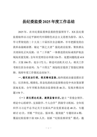 / 【七哥公文】2025年:县纪委监委2025年度工作总结+更多免费公文+VX:QiGeGongWen2024