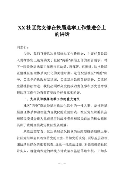 / 【七哥公文】2025年:XX社区党支部在换届选举工作推进会上的讲话+更多免费公文+VX:QiGeGongWen2024