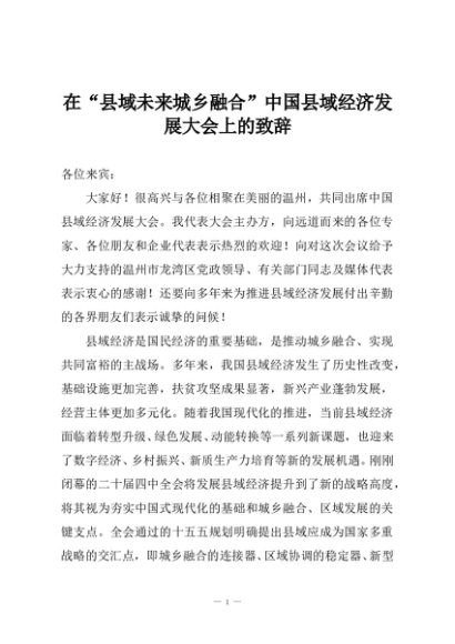 / 【七哥公文】2025年:在“县域未来城乡融合”中国县域经济发展大会上的致辞+更多免费公文+VX:QiGeGongWen2024