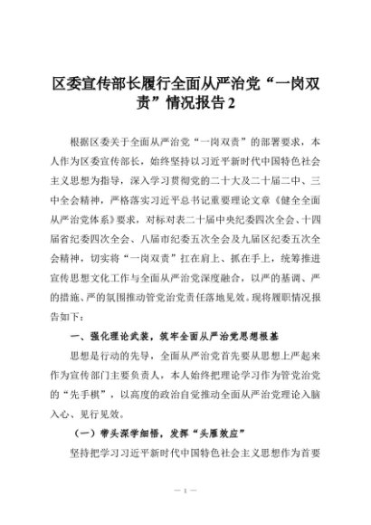 【七哥公文】2025年:区委宣传部长履行全面从严治党“一岗双责”情况报告2+更多免费公文+VX:QiGeGongWen2024