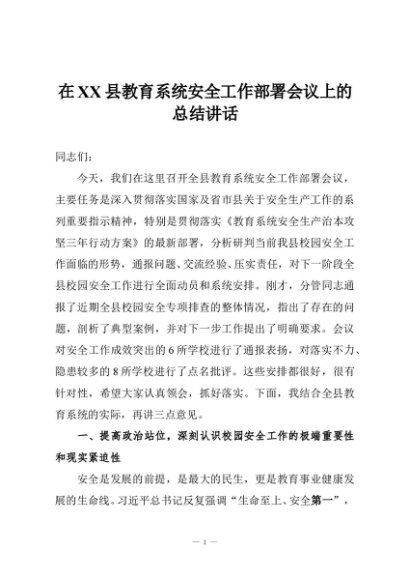 / 【七哥公文】2025年:在XX县教育系统安全工作部署会议上的总结讲话+更多免费公文+VX:QiGeGongWen2024
