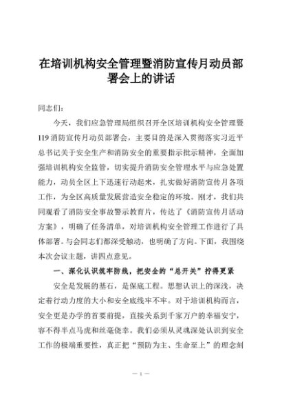 / 【七哥公文】2025年:在培训机构安全管理暨消防宣传月动员部署会上的讲话+更多免费公文+VX:QiGeGongWen2024