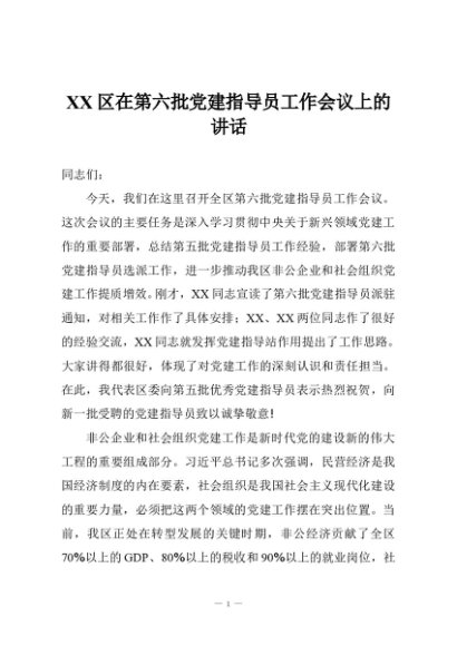 / 【七哥公文】2025年:XX区在第六批党建指导员工作会议上的讲话+更多免费公文+VX:QiGeGongWen2024
