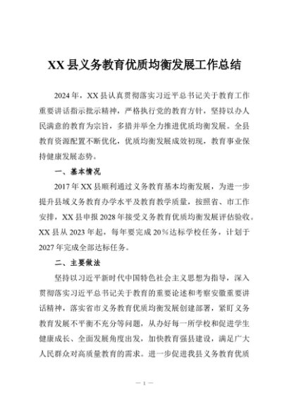 / 【七哥公文】2025年:XX县义务教育优质均衡发展工作总结+更多免费公文+VX:QiGeGongWen2024