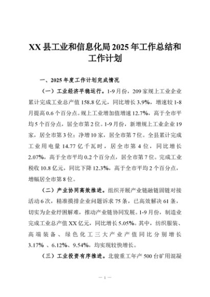 / 【七哥公文】2025年:XX县工业和信息化局2025年工作总结和工作计划+更多免费公文+VX:QiGeGongWen2024