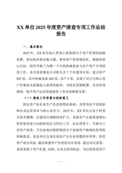 / 【七哥公文】2025年:XX单位2025年度资产清查专项工作总结报告+更多免费公文+VX:QiGeGongWen2024