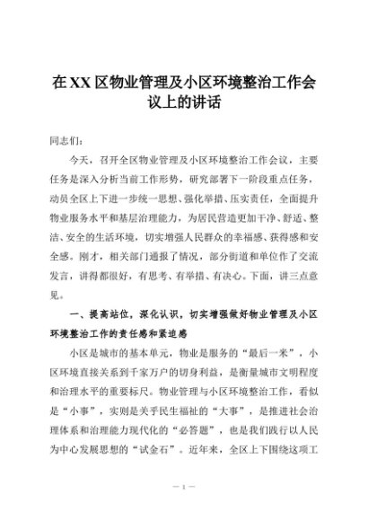 / 【七哥公文】2025年:在XX区物业管理及小区环境整治工作会议上的讲话+更多免费公文+VX:QiGeGongWen2024