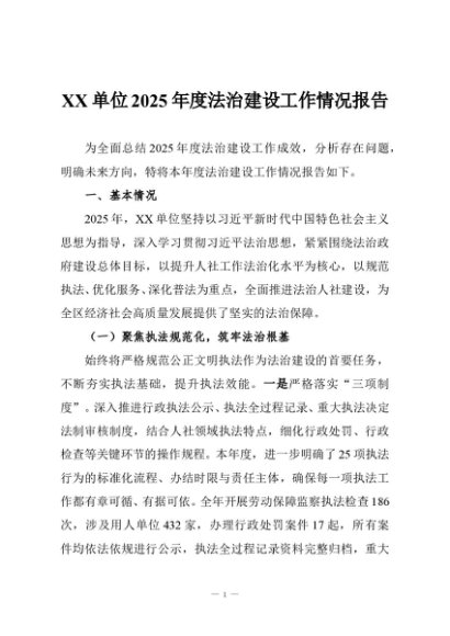/ 【七哥公文】2025年:XX单位2025年度法治建设工作情况报告+更多免费公文+VX:QiGeGongWen2024