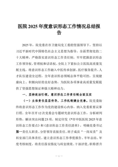 / 【七哥公文】2025年:医院2025年度意识形态工作情况总结报告+更多免费公文+VX:QiGeGongWen2024
