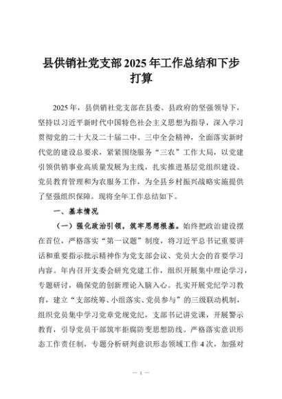 / 【七哥公文】2025年:县供销社党支部2025年工作总结和下步打算+更多免费公文+VX:QiGeGongWen2024