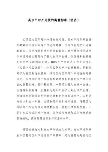 / 【七哥公文】2025年:高水平对外开放的衡量标准(经济)_副本+更多免费公文+VX:QiGeGongWen2024
