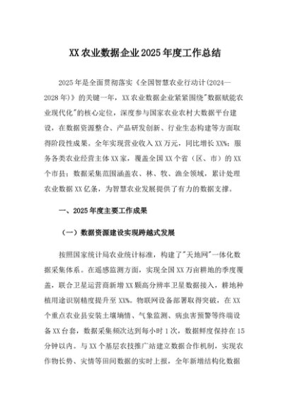 / 【七哥公文】2025年:XX农业数据企业2025年度工作总结+更多免费公文+VX:QiGeGongWen2024