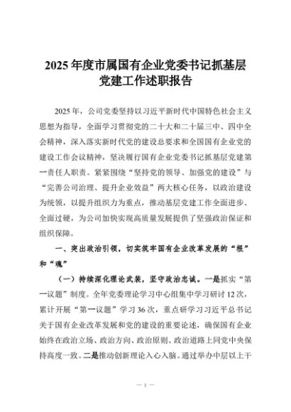 【七哥公文】2025年:2025年度市属国有企业党委书记抓基层党建工作述职报告+更多免费公文+VX:QiGeGongWen2024